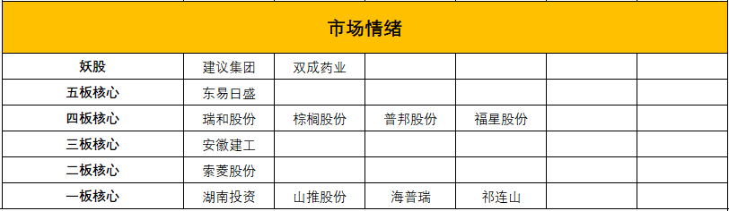今日连板16家,5天内首板46家,连板熟练骤降,两市合计涨停87家,炸板49家。封板成功率64%,封板率一般。日内赚钱效应一般。(以上涨停数据已去除ST和次新股,去除干扰,取其精华,方便统计和分析市场主流。)市场修复逐步走好,新的题材等待挖掘,下面是今日市场情绪复盘表,提供参考(板高度,板块,技术面各方面综合):