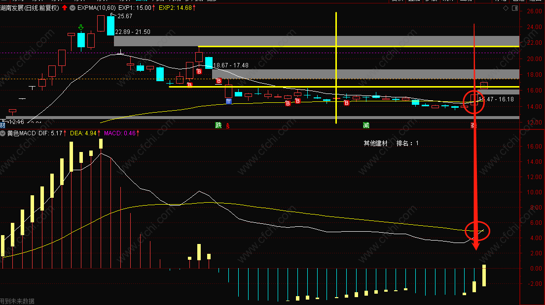 下图为我给大家的个股举例,MACD上穿0轴这是第一点,第二点是就一定要去看EXPMA指标是否形成了金叉。