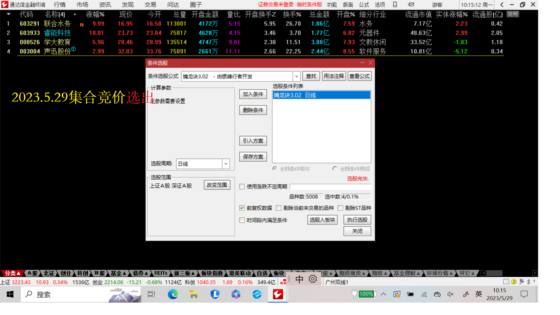 经过三年的实战检验和近期大盘震荡的洗礼,擒龙诀集合竞价选股器依然表现不凡,为粉丝朋友们提供了非常宝贵的财富发现和积累的工具。以下面的截图为依据,朋友们可以看到这些天是不是一直默默的强势推出你所希望看到的目标。擒龙诀集合竞价选股器全天数据不会改变,即不会漂移,所以你可以在当天任何时候使用它选股的。