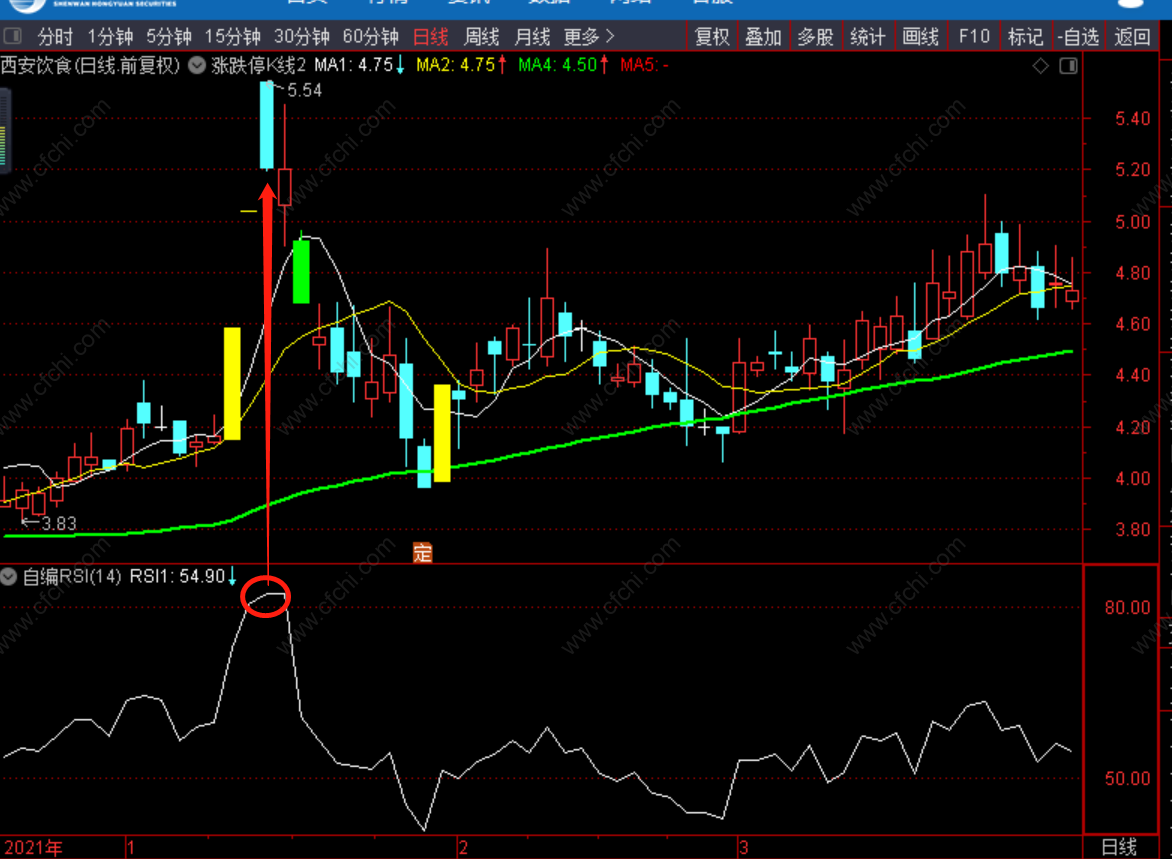 3.用法:均线大于数值80为随时卖出信号。