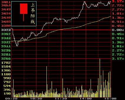 它的出现,表明多空交战中多方的攻击沉稳有力,股价先跌后涨,行情有进一步上涨的潜力。