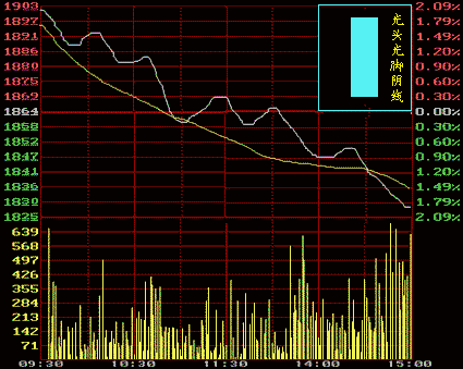 同样为穿头破脚阳线,股价走势若表现出在全日多数时间内横盘或者盘跌而尾市突然拉高时,预示次日可能跳空高开后低走。