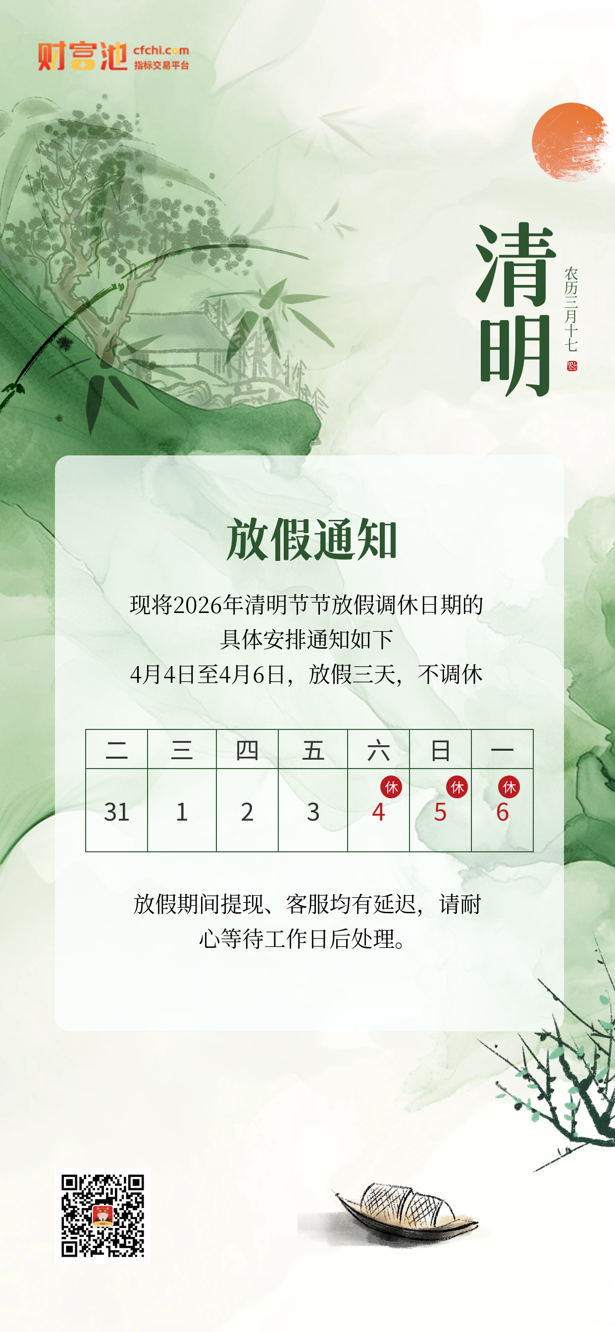 2026年财富池清明节放假通知