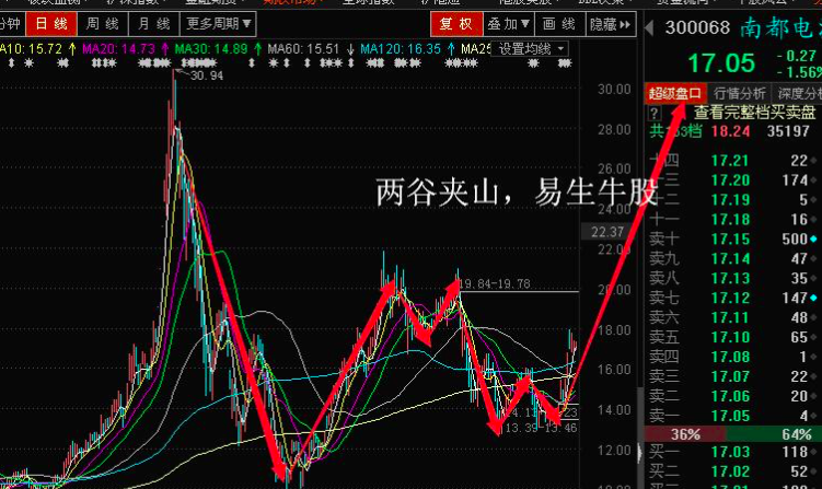 (波段炒股技巧之几乎没人知道的绝招“两谷夹山,右浪介入”!(实例))
