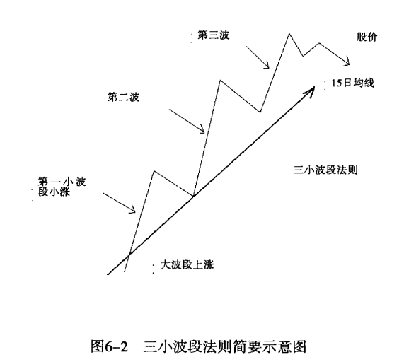 对于那些上涨幅度和运行时间远远不够的个股来说,小波段的上涨行情依然会出现。从大波段上涨确立开始,小波段的上涨行情一般会持续三波左右。这就是我们所说的三小波法则。