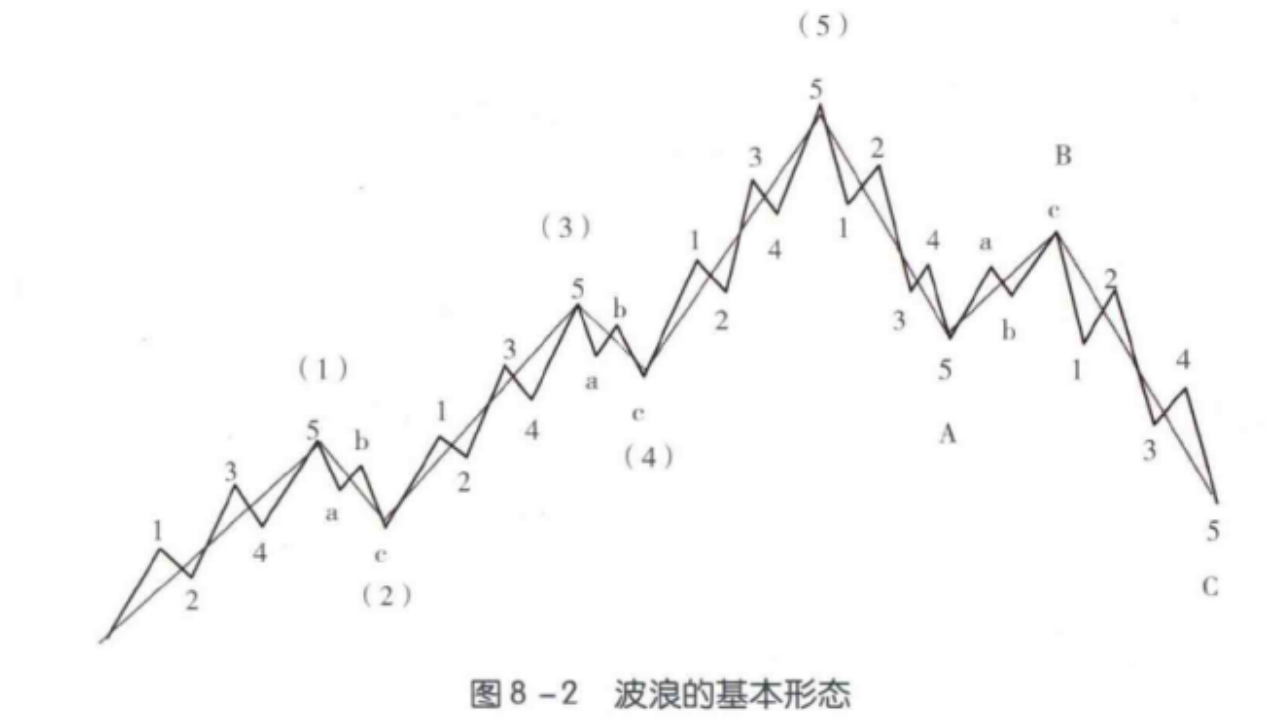 此外,波浪之间存在大浪套小浪的关系。每一个级别的波浪本身,既可以被拆解成更小级别的波浪,也是更高级别波浪的组成部分,如图8 -2所示。