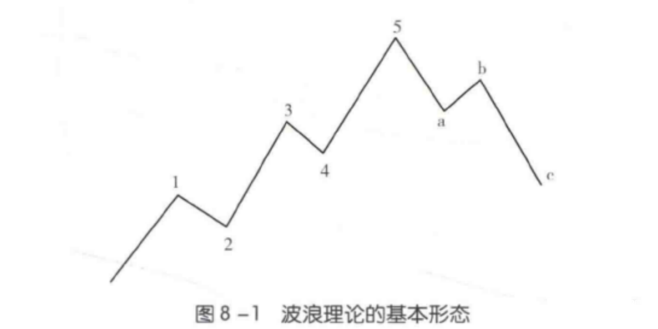 驱动浪和调整浪是价格波动的两个最基本形态,驱动浪可以细分成五个小浪,一般用第1浪、第2浪、第3浪、第4浪、第5浪来表示;调整浪可以划分为三个小浪,通常用a浪、b浪、c浪表示,在上述八个波浪完毕之后,一个循环即告完成,走势将进人下一个八浪循环,如图8-1所示。