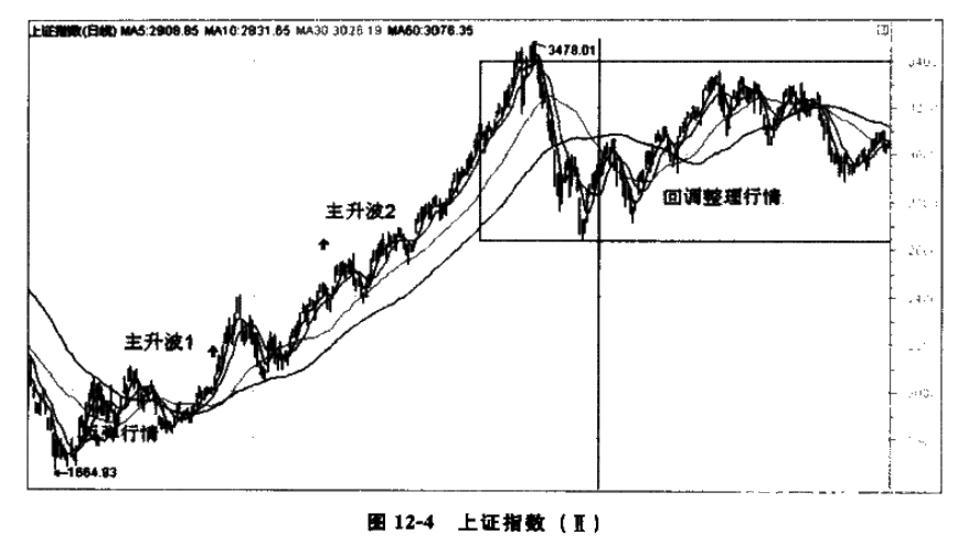 (2)判断波段主升,必须结合中长期趋势。波段行情必须在60周均线上方为强势行情;波段行情仅仅突破30周均线,则为普通行情,行情高度有限。周线、月线是判断中长期趋势的重要标准。