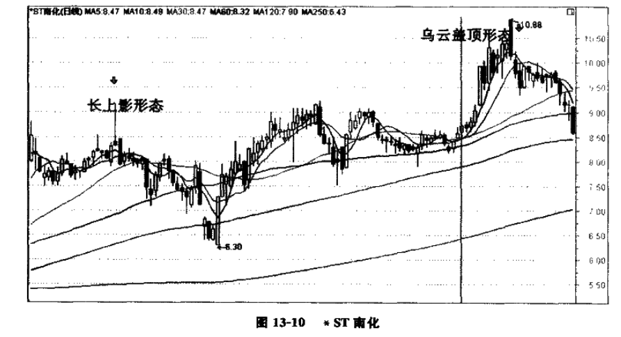 案例1 *ST南化(600301)——长上影和乌云盖顶头部(见图13-10)。