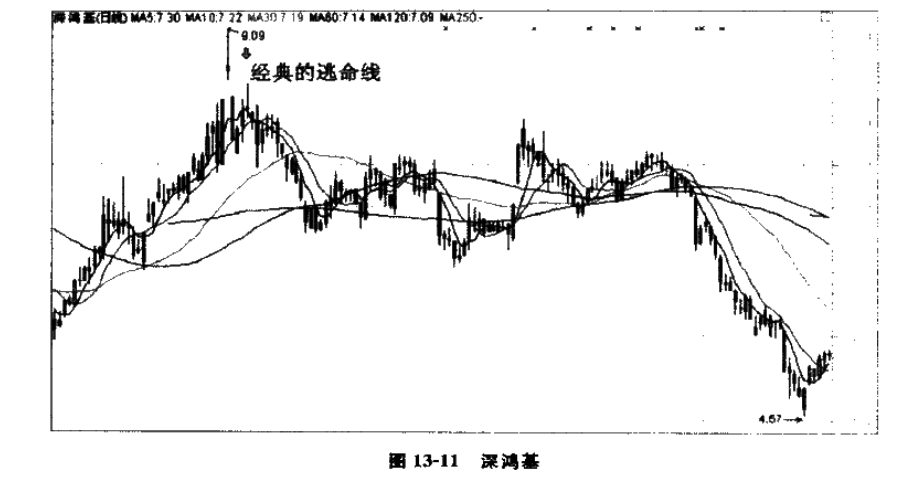 案例2深鸿基(000040)——经典的长上影头部(见图13-11)。