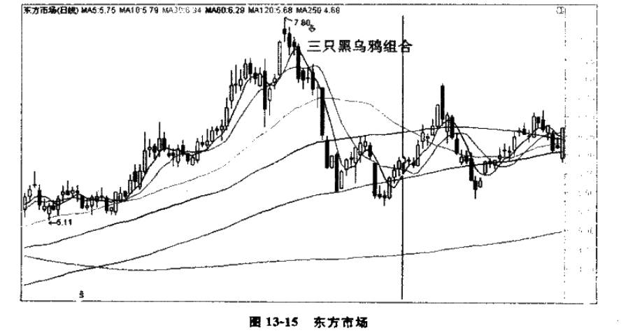 案例6东方市场(000301)——三只黑乌鸦头部(见图13-15)。