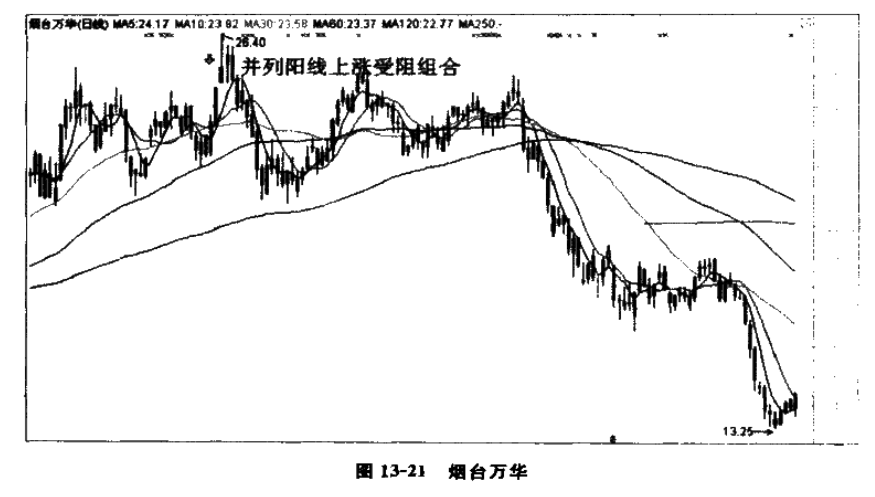 案例12烟台万华(600309)——一并列阳线上涨受阻组合头部(见图13-21)。