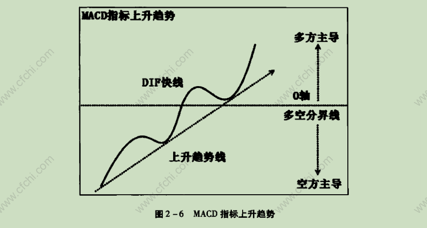 市场一旦形成趋势就不会轻易改变,直到一个平衡点,趋势被打破为止。上升趋势线反应了市场向上波动的趋势,如图2-6所示,趋势线对行情有支撑作用,一旦指标数值下破趋势线,表示短线的上升行情发生转变,有时指标会再次回抽而没能重新站上趋势线,反而再次下破前低,这时可以确认上升趋势发生改变。
