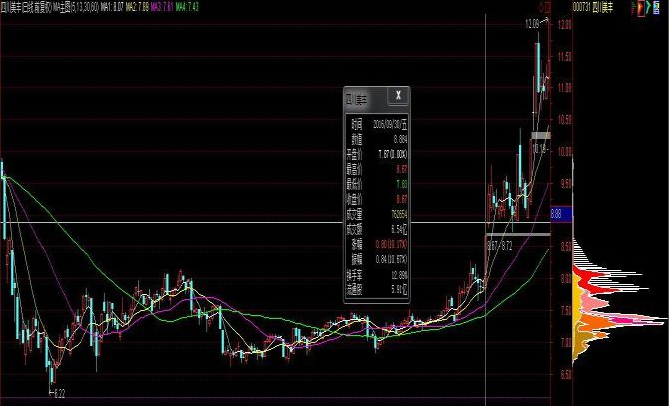 将60分钟K线图只能给的股价均线系统参数设置为5、10、20,并将K线图、成交量图、MACD图显示于同一屏幕上。当股价从底部上升到一定高度,如果K线图上出现股价滞涨、成交量放大,或股价回落、成交量萎缩等现象,则股价均线、量均线、MACD都会有上升逐渐转变为走平或下降。当家均线系统的5单位线下穿10单位线,MACD得快线下穿慢线时,说明这支股票在此价位区域有大量获利盘涌出或庄家出货等情况发生。通常情况下可以认为此区域股价已经进入顶部区域,最起码股价会在这个位置停留一段时间。