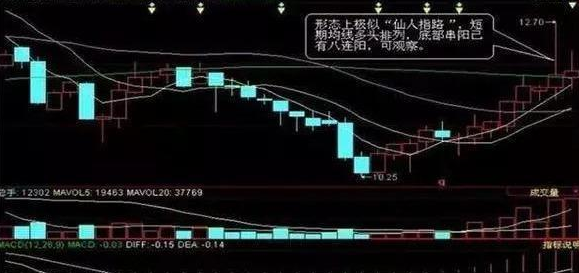2、形态上极似“仙人指路”,短期均线多头排列,底部串阳已有八连阳,可观察卖出: