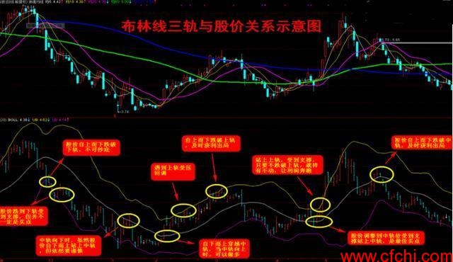 (2)布林线中轨当中轨向上时,中短期市场处于多头市场,当股价自下而上穿越中轨是最佳买点,意味着股价重拾升势;当股价自上而下跌到中轨因受到支撑而有效止跌再次上涨,也是最佳的买点,意味着调整受到支撑而结束;当股价自上而下跌破中轨时,意味着股价回调中轨支撑失败,短线投资者要引起警惕,规避风险;当中轨向下时,中短期市场处于空头,股价自下而上穿越中轨,但受整体下降趋势的影响,持续上涨的可靠性不高,不能急于做多,应谨慎操作为宜;当股价自下而上碰到中轨受压再次向下,意味着中轨压力有效,中短期向下趋势不改,要果断做空;当股价自上而下跌破中轨,意味着空头市场的进一步泄空,要坚决离场,规避风险。