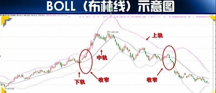 从boll线的示意图当中,我们可以看到,它共有三条线,分别是上轨、中轨、下轨。当行情处于上升状态时,股价通常在中轨和上轨之间运行,当行情处于下跌时,股价通常在中轨和下轨间运行。当股价在中轨和上轨之前运行的时候,说明这只股票很强势,可以在中轨附近买入,在上轨附近卖出,一旦股价跌破了中轨,则可以减仓。当股价在中轨和下轨之间运行的时候,说明这只股票相对较弱,建议投资者对这样的回避此类个股。如果持有这样的股票,可以反弹到中轨附近卖出。