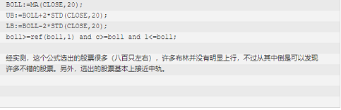 需要进行人工筛选,适合短线操作策略,也可进行组合,布林带组合其他选股公式,例如:均线粘合、三线金叉等,大大提高成功率。