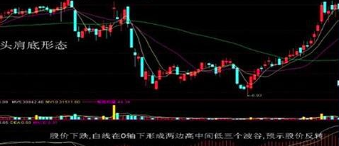 头肩底形态与三重底形态一样,同样是股价下跌至底部后形成的连续三个底部。只不过在这三个底部中中间的一个明显要低于左右两个。这三个底部从左到右依次叫作左肩、头部、右肩。
