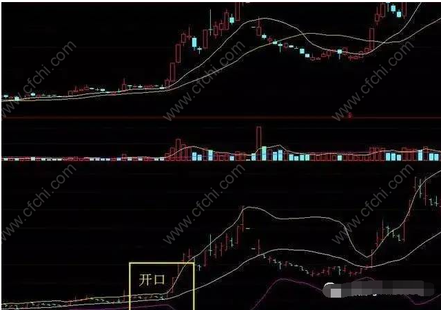 这种情况,股价一般游走在中轨和上轨之间,为上涨行情。