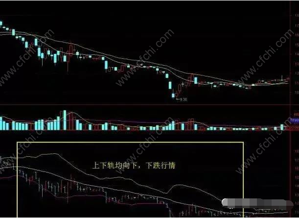 这种情况,股价一般游走在中轨和下轨之间,为下跌行情。