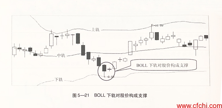 当股价下跌到BOLL下轨位置时,获得支撑,如图5-21所示。