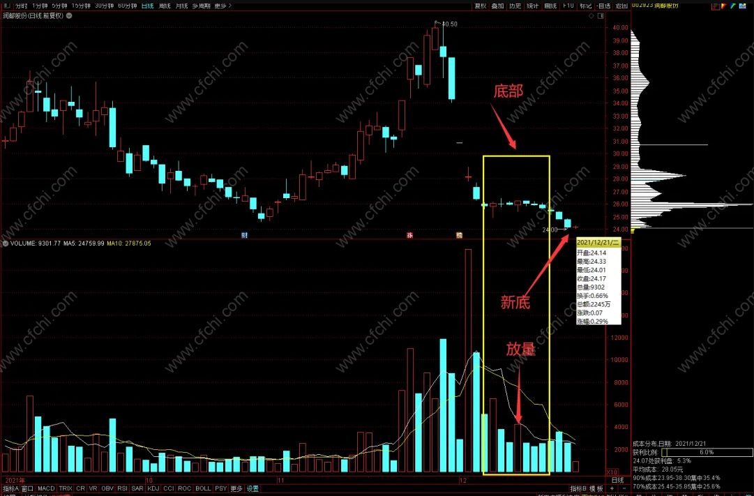 对于抄底,很多人都有自己的心得,什么底部缩量、筹码获利0等等,今天就单讲底部放量。