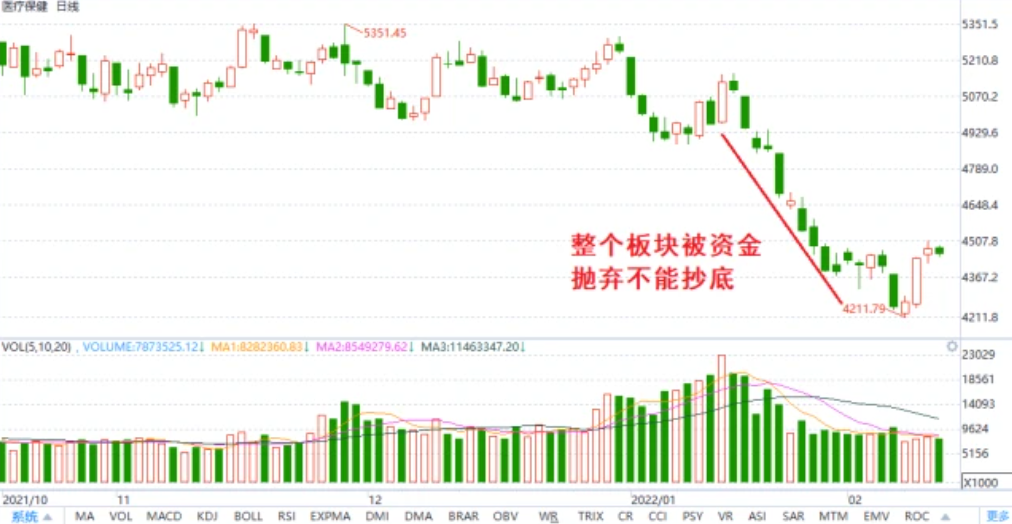 有些个股的下跌是由于整个板块的下跌引起的,比如一月底的医疗股,整个板块连续下跌,早期抄底风险巨大。