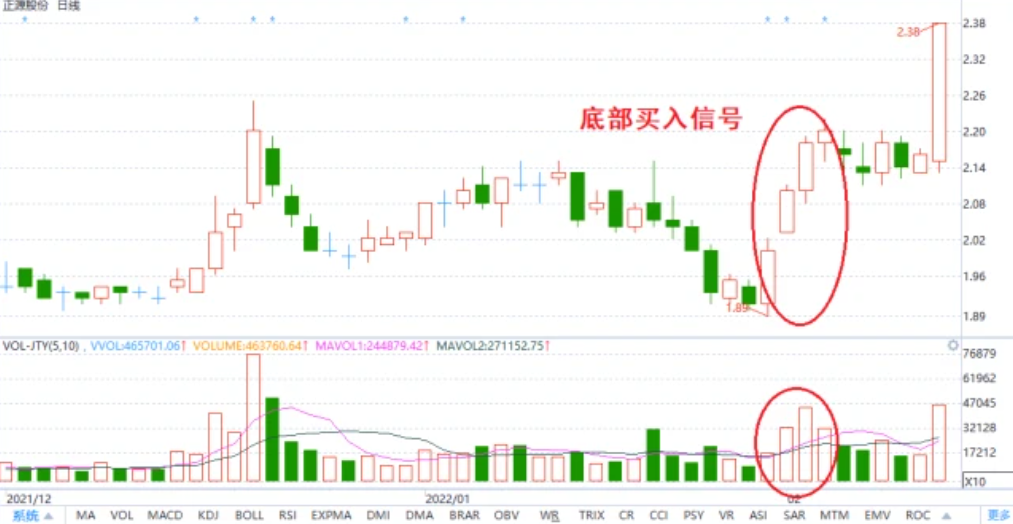 不管是基本面改善或其他因素,主力进场必然会在K线图上留下痕迹。底部连续阳线,尤其是能缩量继续上涨的连续新高阳线组合是一个重要信号。