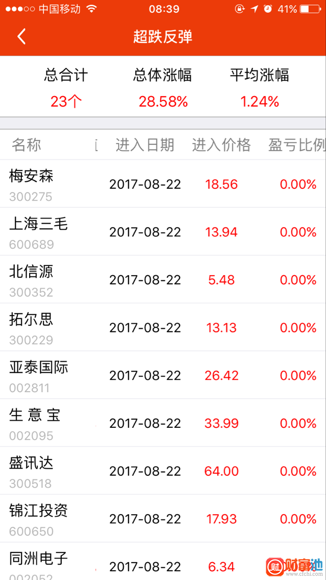 2017-08-22超跌反弹股票池合计23个股欢迎优中选优仅供参考!