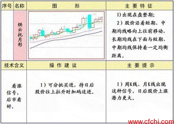 特征:出现在盘整期,短、中期均线略向上往前移动;看涨信号,后市看好。