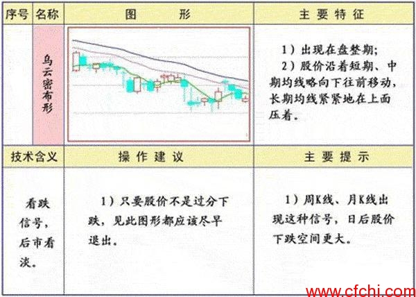 特征:出现在盘整期,短、中期均线略向下往前按移动。看跌信号,后市看淡。