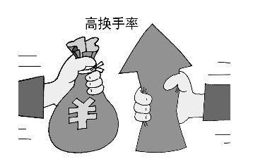 正常的情况下,股票每日的换手率大概在1%——2.5%左右,因此3%这个数字就成为了一种分界,大多数股票换手率都在3%以下,一旦高出这个数字,就证明这只股票进入了相对活泼的状况。如果一只股票的换手率临近10%的话,那么这次股票就是一只强势股,股价处于高度活泼中。
