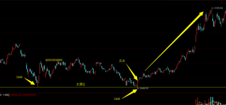 有时,股价会在支撑位附近徘徊许久,这时,我们也需要关注一下,因为这么久的盘整,肯定预示着会有大的行情,要么继续上行,以摧枯拉朽之势,要么急转直下,一泻千里。