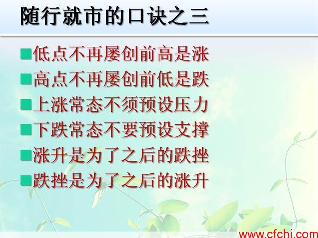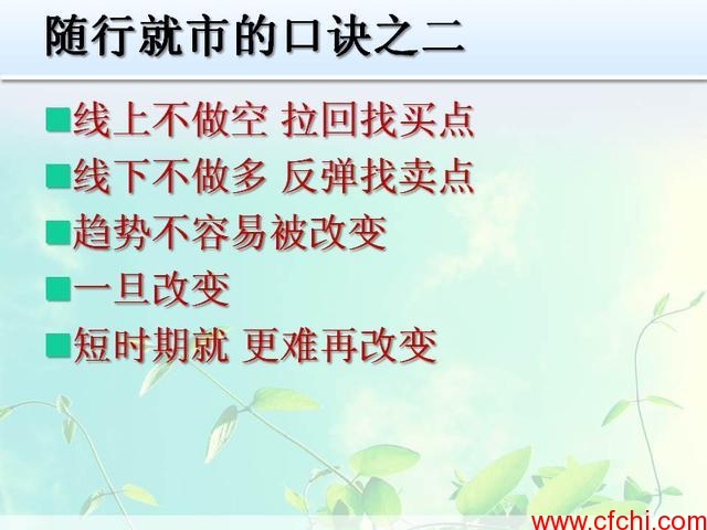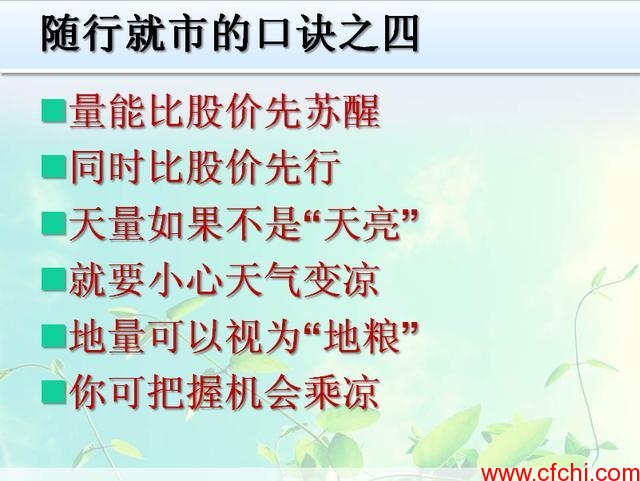10.趋势诀:进居出局看趋势,量价无形要知止。众人皆追我独醒,人气低迷准备拾。