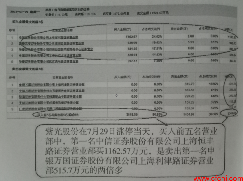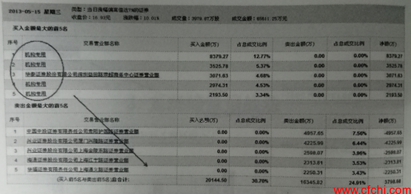 买人的前五个营业部的总资金远大于卖出的前五个营业部的总资金,说明当日主动介人的资金多于主动退出的资金,这当然有利于股价的进一步上涨。值得注意的是,买人第一名营业部的资金量越大越好,最好远远大于卖出第一名营业部的资金量,因为买人第一名的营业部极有可能是主力的大本营。