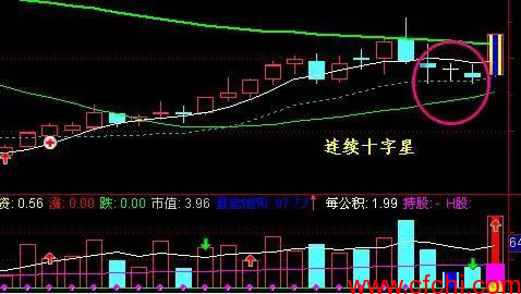 既然是一根十字星说明多空双方力量达到均衡,那么,连续十字星则意味着这多空双杠僵持时间已经很久了,绷紧的弦就要断裂。均衡即将被打破,迅猛的变盘就在眼前。