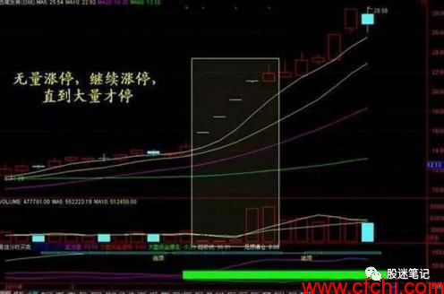 2、无量涨停,继续涨停,直到大量才停:无量涨停其实和无量跌停的性质差不多,股票出现第一个无量涨停的时候,说明后市可能还是会继续涨停,直到后期出现大量的时候结束涨停,出现回档或者是反转走势。