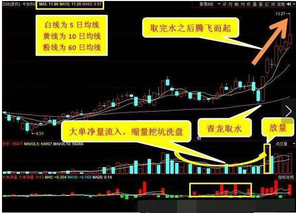 3。青龙取水后得到上升的能量,于是腾空向上,股价大涨;