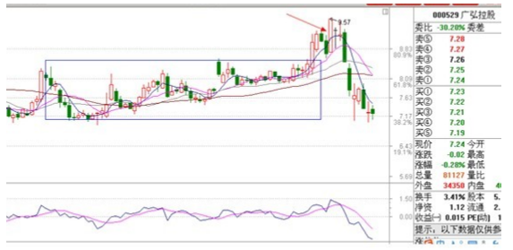 000529该股箱体横盘半年之久,4月26日盘口强势,回踩前期箱体后该股当日涨停,临盘发现量价配合良好,在涨至8%处短线30%仓位狙击,当日涨停,第二日回调买入第二仓30%日仓位狙击,灾难发生在第四天,大盘暴跌,该股主力无力拉升掉头向下暴跌7%,盘口观察主力资金杀跌明显,结果很无奈,按事前既定的战术纪律,亏损3%必须止损出局,这是个很经典的失败案例,从介入条件看并无太大毛病,但大盘系统环境过于恶化恐怕是失败的最主要原因。
