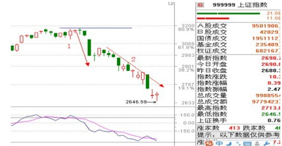 所以我们的涨停板战法研究对系统环境有严格要求,大盘必须处于牛市环境或者震荡平衡市环境中才适用,大盘K线下降的斜率如果小于45%可小仓位参与,大盘下降的角度大于60%禁止参与,我们看看近期大盘下降的趋势: