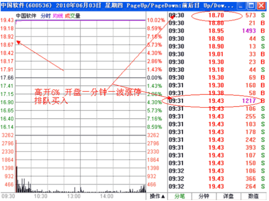上图是新股贵州百灵(002424),是我非常看好的医药股,6月10日午后13点27分涨停,激进投资者投资者可在最后一笔大单出现后买入,这个对看盘时间要求比较看,而且要眼疾手快,买入机会可能只在刹那间,由于涨停力度一般,稳健投资者可以观望为主,从上图看,次日该股并无能力冲击涨停,可见青铜级涨停强度值确实一般。