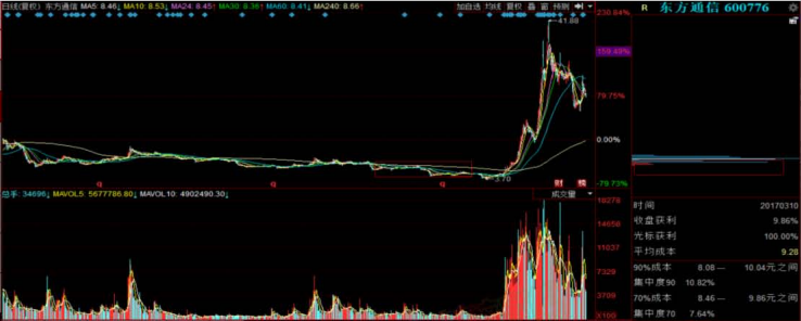 该阶段的股价脱离主力成本区,拉升突破顶格筹码区域的时候成交量是放量的。在整个拉升过程中,主力低位筹码基本不懂,锁仓越好,拉升越高。从获利角度来看,拉升阶段,股价不断的上移,筹码上移,持有者都是出于获利阶段。