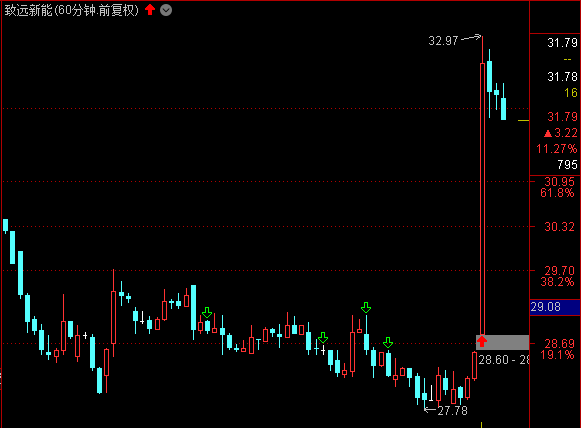 早盘涨停开盘手法抢进致远新能300985,是两开动作里的涨停当日的小时狙击信号进场,止损27.78,目标52,时间为趋势不变的情况下坚持到下月的冲高压力或目标位平仓