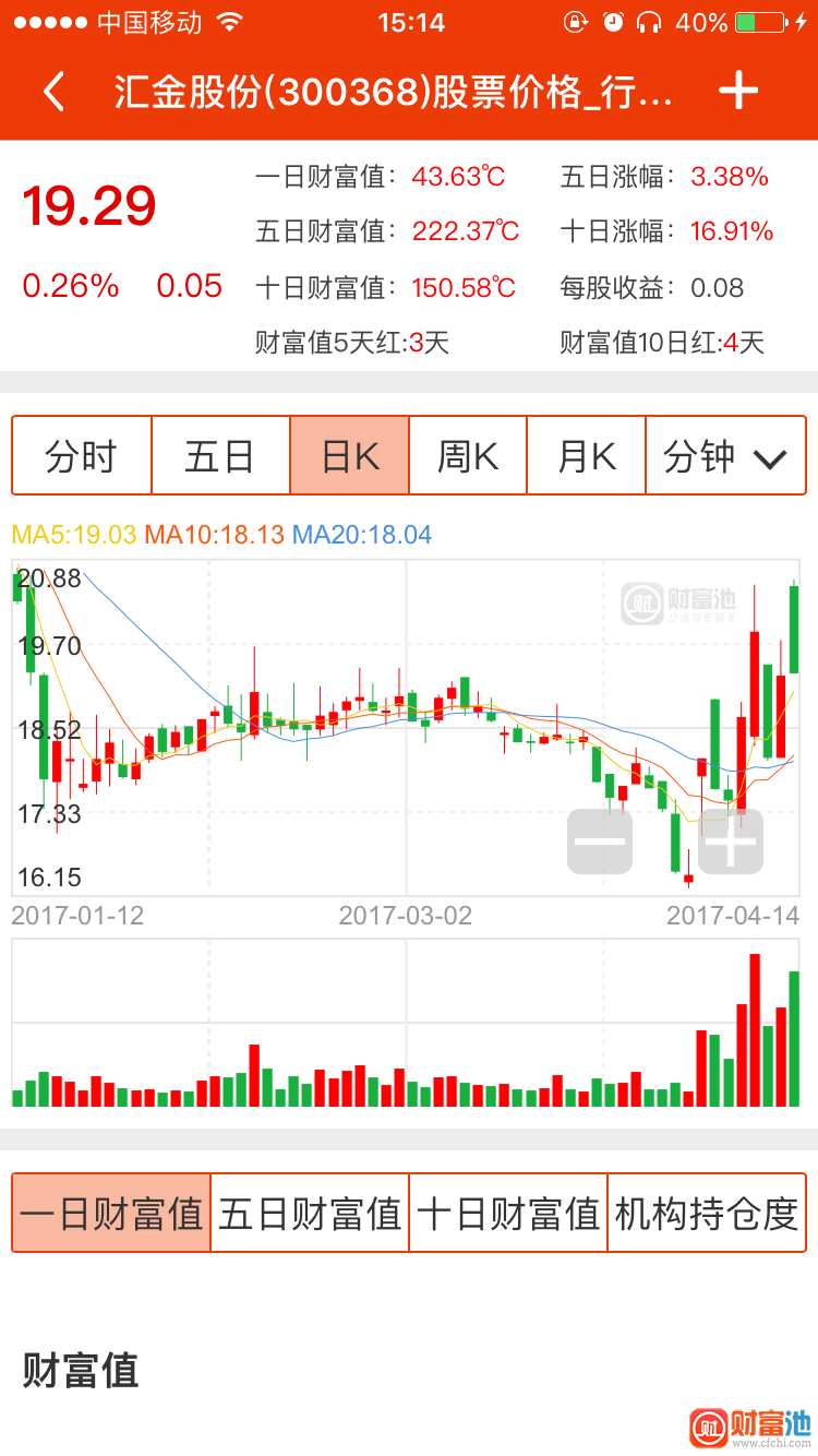 2017-04-13 财富池结合长上影选出汉威电子,14日早盘开盘竞价介入,收盘涨幅1.78%个点,盈利1.7%左右;