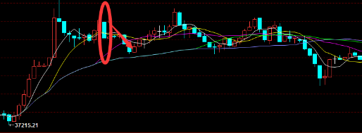 这个也是我们常说的龙头首阴战法,指股价连续上涨后出现了一根放量阴线,次日就开始止跌上涨,这里的保险买点就是股价突破放量阴的最高价时介入。