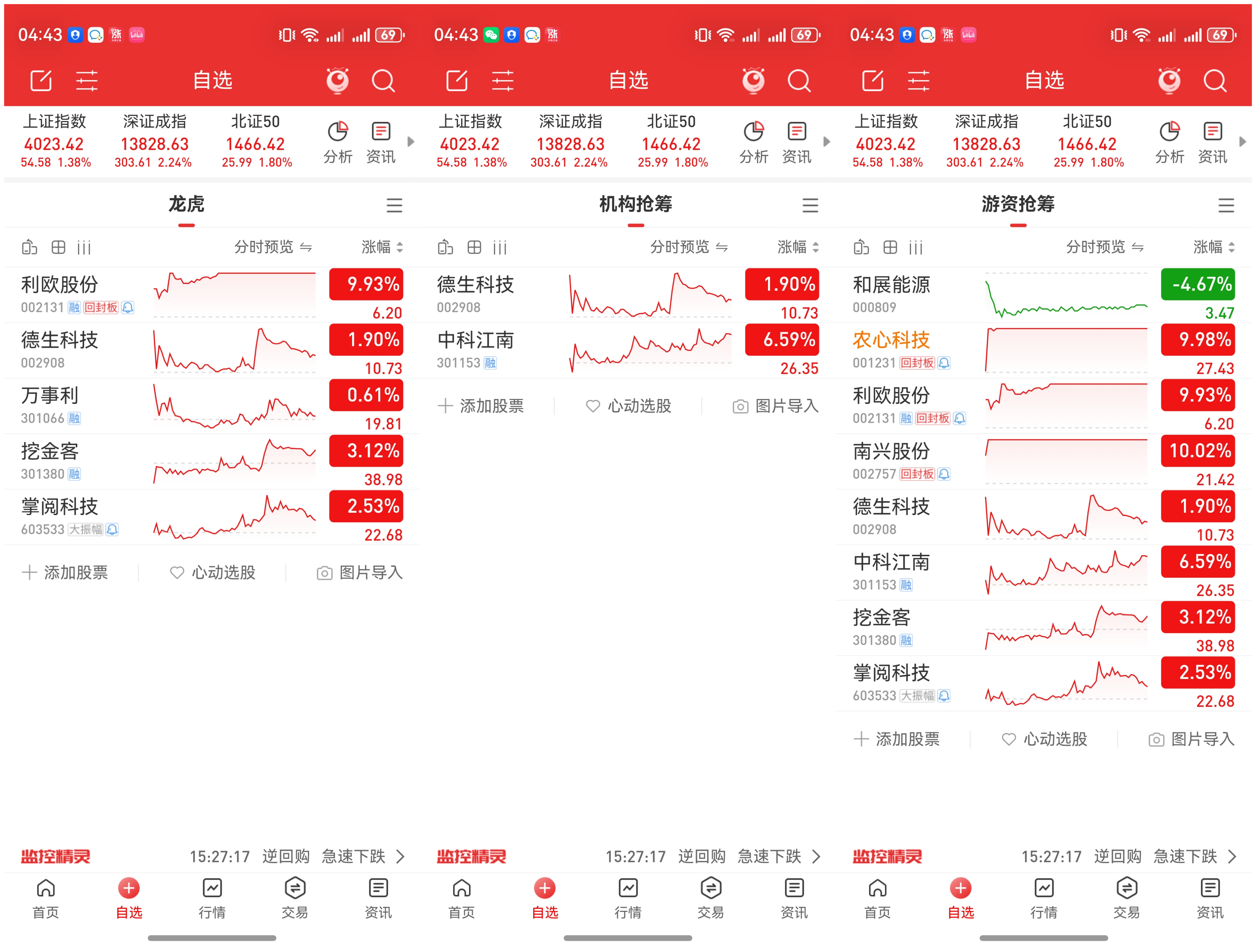 2. 涨停:4只涨停,除去重复(两个策略都触发)个股,涨停率45%,远高于平均水平。