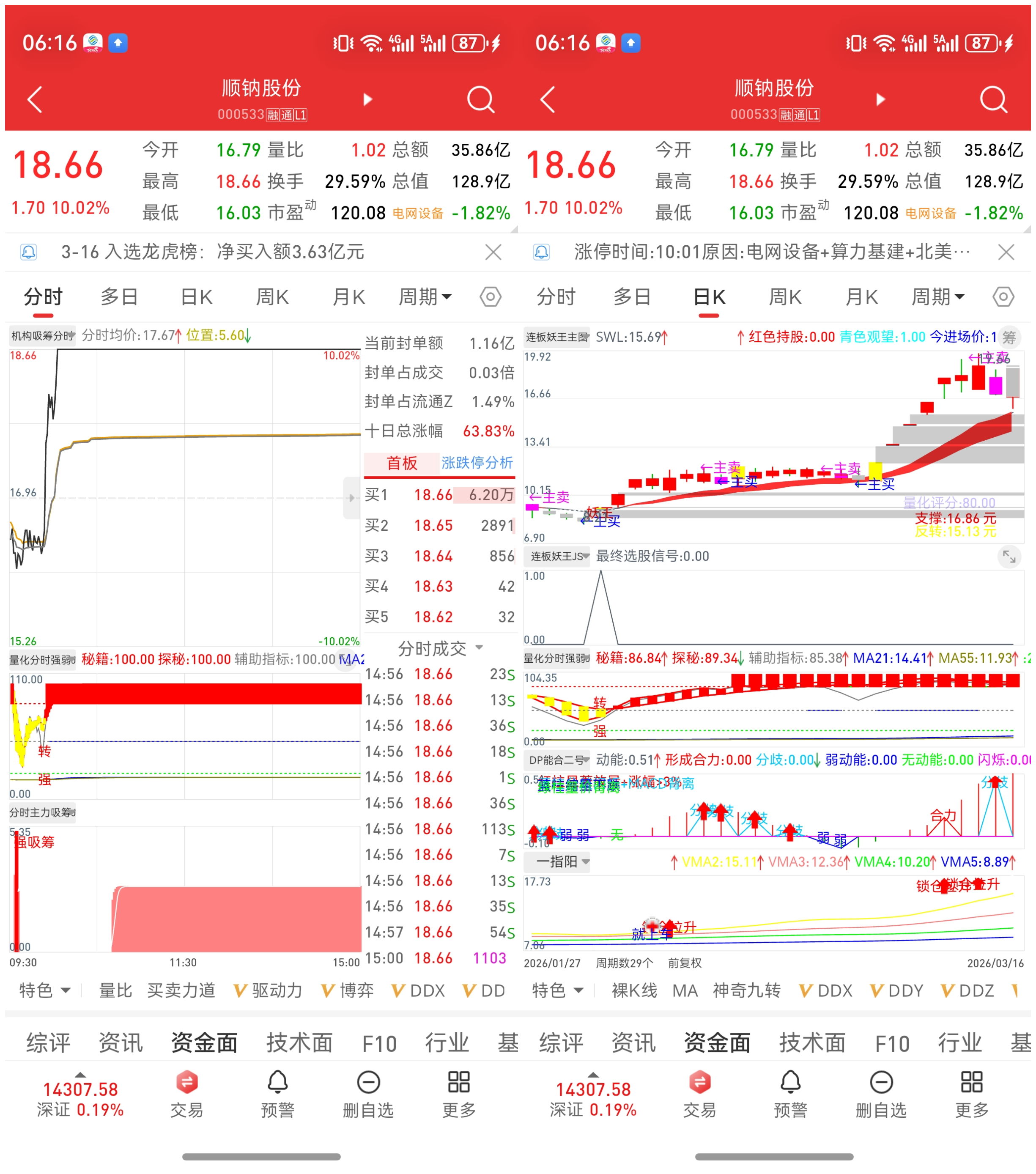 近期市场环境是非常难做的,尤其是3月13,16日,凭感觉交易85%以上概率是连续被套,但是也不是绝对的,我们的“连板”小队做得还算顺畅,今天(3月16日)水下5个点入顺钠,可谓经典,凭什么呢,肯定不是感觉,且看分析(涉及个股教学使用,不做买卖推荐,风险自担):