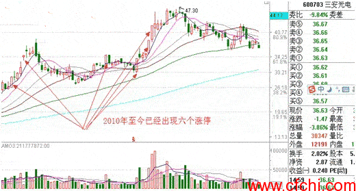 600703,三安光电,2010年1月份到现在已经出现了6个涨停板,可谓强庄股,其实该股自2009年1月份到现在一共出现了22个涨停板,平均每个月1.37个涨停板,这就说明该股有优秀的涨停基因,对股票历史走势的细心研究能提高我们涨停板战法成功的概率,试想一下,当某天出现两只类似中兴通讯和三安光电气质的股票,在基础盘口相同的情况下,你会倾向于哪只股票更能涨停呢,答案是不言而喻的。