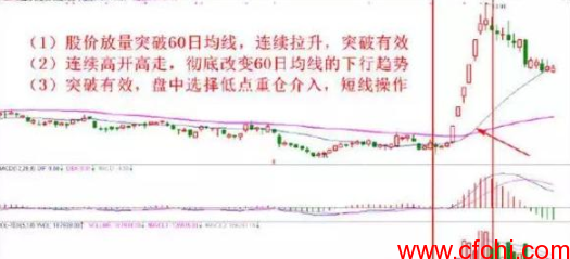 1、突破60日均线时要有明显放大的成交量配合,随后股价能够站稳于60日均线之上,否则后市可能还有较长时间反复。